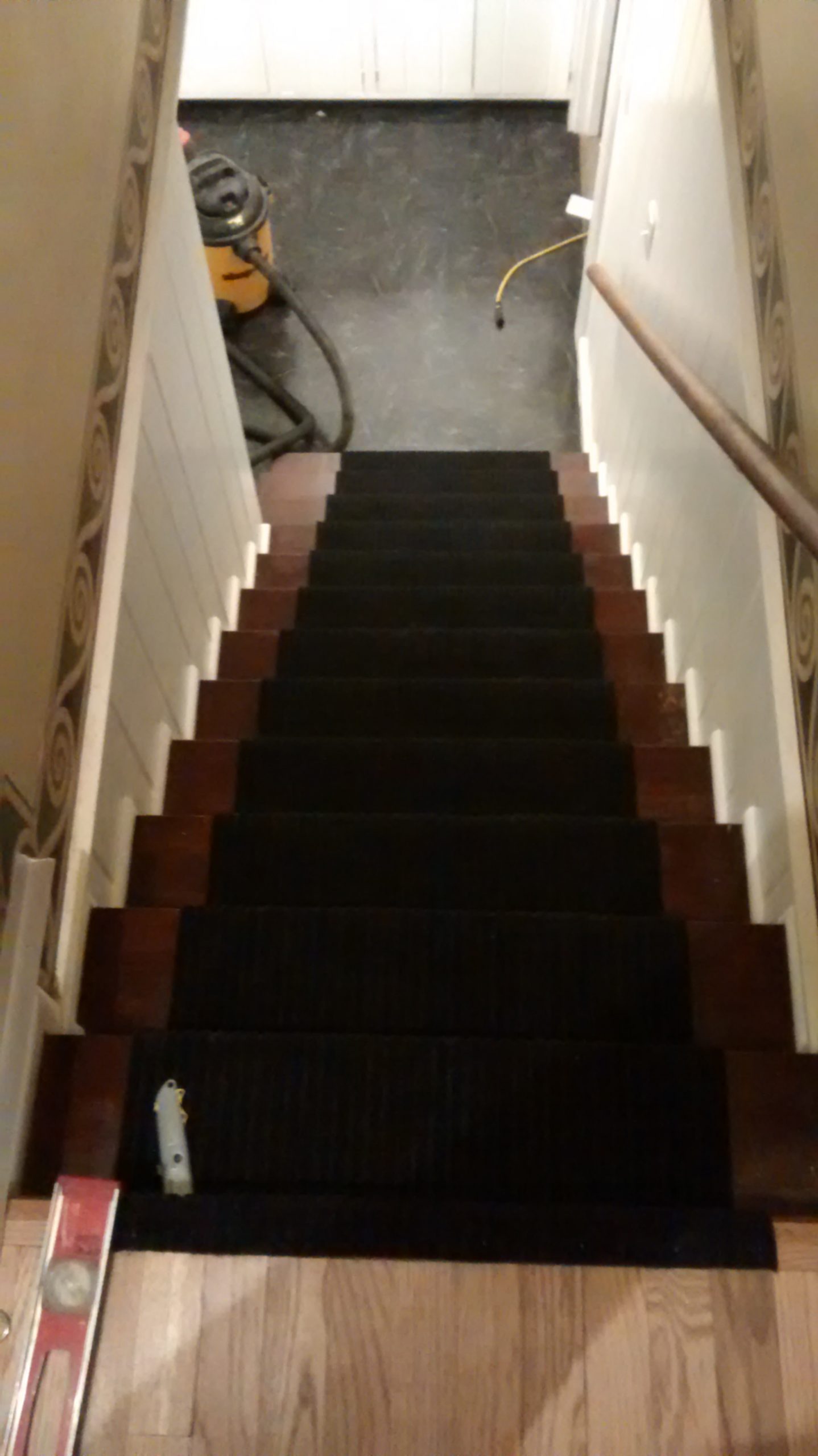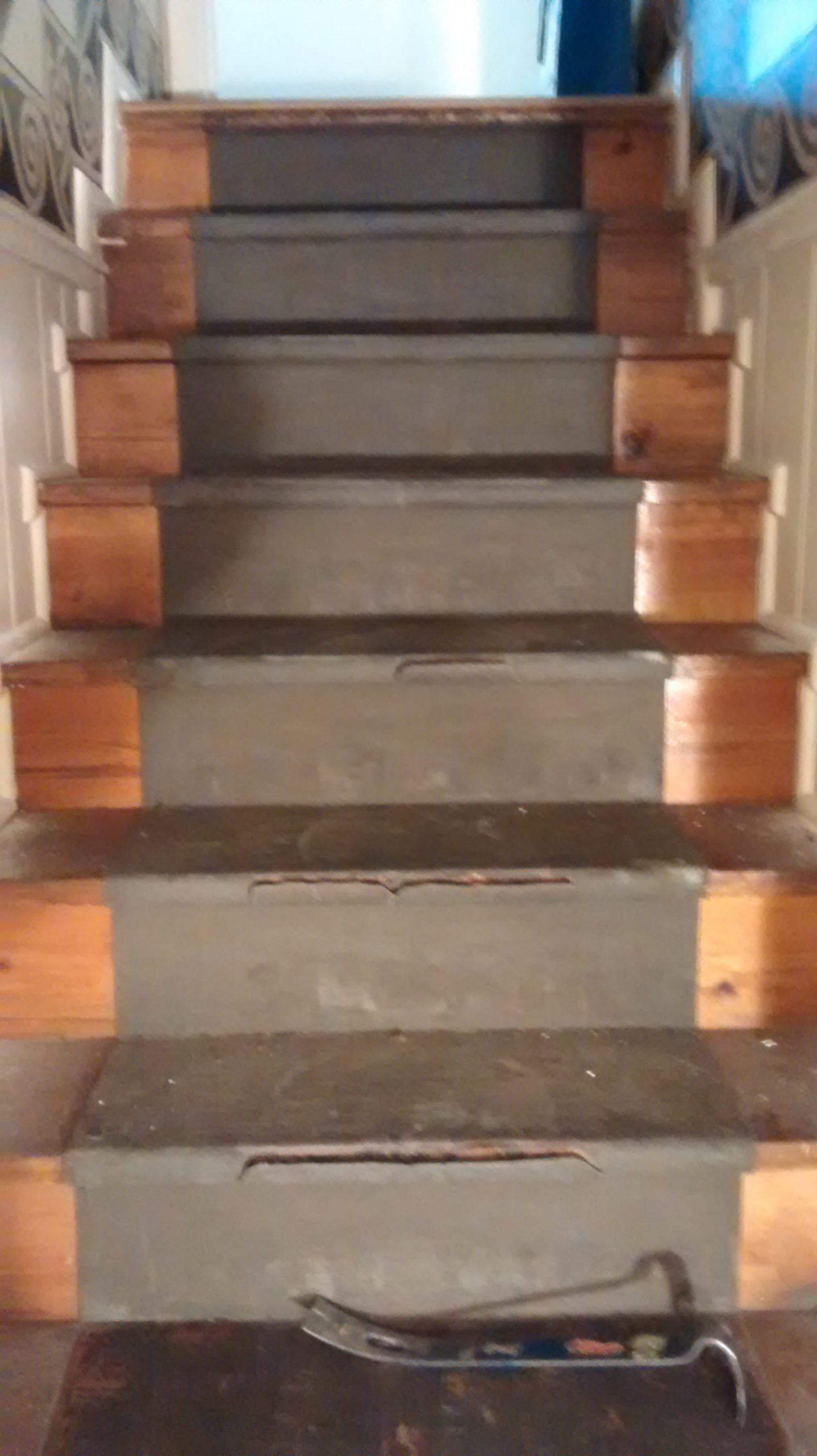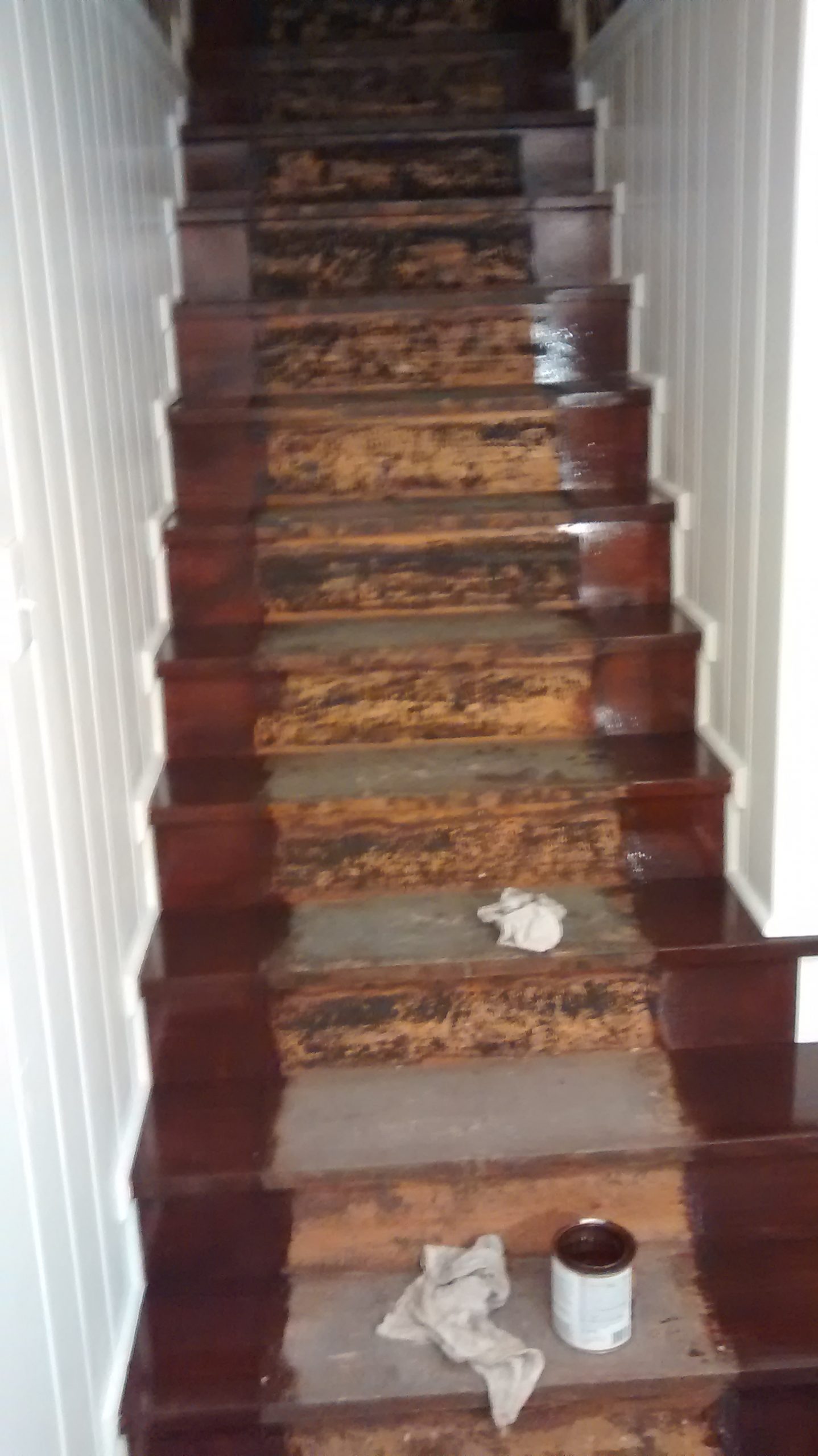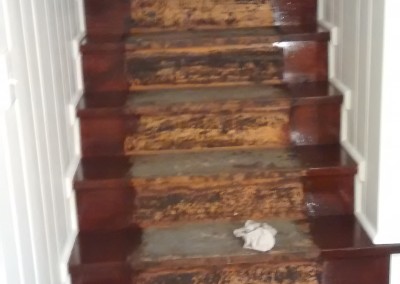 Tread removed, walls painted and steps stained